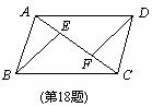 18. 如图,在□ABCD中,E,F是对角线AC上的两点,且AE=CF.