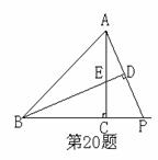 20、在△ABC中,∠ACB=90°,∠ABC=45°,P在BC延长线上从左向右移动,BD⊥AP于D,交AC于E,则移动过程中,BE与AP的大小关系为( )