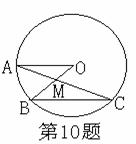 10、如图,在⊙O中,弦BC与半径OA平行,AC、OB相交于点M,若∠C=25°,则∠AMB= 度。