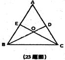 23、(本题6分)如图△ABC中,AB=AC,D、E分别为AC、AB的中点,BD、CE,相交于点O。求证:OB=OC