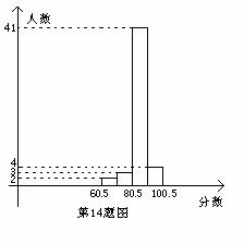 14.某中学在一次健康知识竞赛活动中,抽取了一部分同学测试的成绩为样本,绘制的成绩统计图如图,请结合统计图回答分数在90.5至100.5这一组的频率是 ;若这次测试成绩80分以上(含80分)为优秀,那么优秀率不低于 .