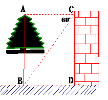 如图,小勇想估测家门前的一棵树的高度,他站在窗户C处,观察到树顶端A正好与C处在同一水平线上,小勇测得树底B的俯角为60°,并发现B点距墙脚D之间恰好铺设有六块边长为0.5米的正方形地砖,因此测算出B点到墙脚之间的距离为3米,请你帮助小勇算出树的高度AB约多少米?(结果保留1位小数;参考数据: