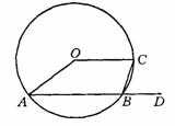8.如图⊙O的半径为4cm,OC∥AB,D为弦AB延长线上一点,若∠CBD=750,则∠A=__________度,四边形OABC面积为 __________ 。