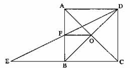 已知:如图所示,在正方形ABCD中,AC、BD交于点O,延长CB到点E,使BE=BC,连结DE交AB于点F。