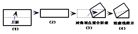 5. 如图,小亮拿一张矩形纸图(1),沿虚线对折一次得图(2),下将对角两顶点重合折叠得图(3)。按图(4)沿折痕中点与重合顶点的连线剪开,得到三个图形,这三个图形分别是( )