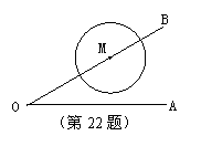 22、如图,已知∠AOB=30°,M为OB边上一点,以M为圆心、2cm为半径作M. 若点⊙M在OB边上运动,则当OM= cm时,⊙M与OA相切。