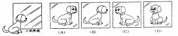 15. 一只小狗正在平面镜前欣赏自己的全身像(如图所示),此时,它所看到的全身像是( A )