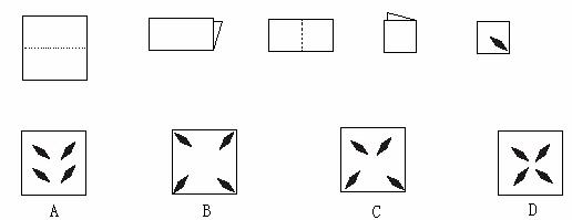 16. 如图,将一张正方形纸片经两次对折,并剪出一个菱形小洞后展开铺平,得到的图形是( )