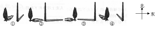 下面四幅图是两个物体不同时刻在太阳光下的影子,按照时间的先后顺序正确的排列应该是