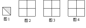 18.做一做:用四块如图1的瓷砖设计正方形拼图方案:使拼成的图案在图2只成轴对称图形,在图3中只成中心对称图形,在图4中既成轴对称图形又成中心对称图形(要求三种拼法各不相同,所画图案中的阴影部分用斜线表示).