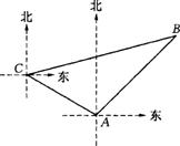 千米的速度沿西偏北30°方向前进,乙船以每小时15千米的速度沿东北方向前进。甲船航行2小时到达C处,此时甲船发现渔具丢在乙船上,于是甲船快速(匀速)沿北偏东75°的方向追赶,结果两船在B处相遇。