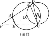 22.如图,⊙O2与⊙O1 的弦BC切于C点,两圆的另一个交点为D,动点A在⊙O1,直线AD与⊙O2交于点E,与直线BC交于点 F 。