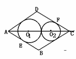 17.如图,已知菱形ABCD,且AB=3,∠B=120°,O1、O2是对角线AC上的两个动点,⊙O1与AB相切于E,⊙O2与CD相切于F,并且⊙O1与⊙O2外切,设⊙O1的半径为R,设⊙O2的半径为r,则R+r的值为 。
