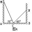 5.如图4,在一个房间内,有一个梯子歇靠在墙上,梯子顶端距地面的垂直距离MA为a米,此时梯子的倾斜角为75
