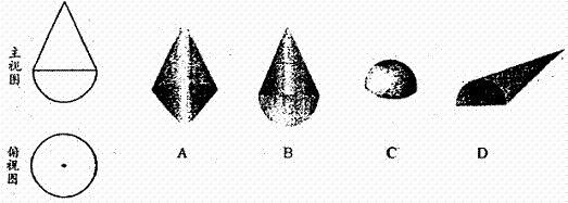 1、下列左边的主视图和俯视图对应右边的哪个物体( B )