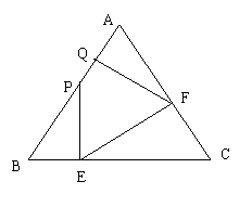 28.已知:如图8,等边三角形ABC中,AB= 2,点P是AB边上的任意一点(点P可以与点A重合,但不与点B重合),过点P作PE⊥BC,垂足为E;过点E作EF⊥AC,垂足为F;过点F作FQ⊥AB,垂足为Q。设BP=x,AQ=y。