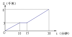 18、小明家距离学校8千米. 今天早晨,小明骑车上学途中,自行车突然“爆胎”,恰好路边有便民服务点. 几分钟后车修好了,他加快速度骑车到校. 我们根据小明的这段经历画了一幅图象,该图描绘了小明行的路程S与他所用的时间t之间的函数关系: