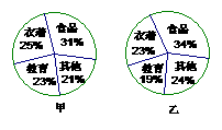 12.右图是甲、乙两户居民家庭全年支出费用的扇形统计图。