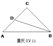 12、(重庆03/11)如图:在等腰直角三角形ABC中,∠C=90°,AC=6,D是AC上一点,若tan ∠DBA=