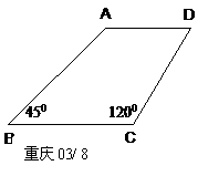 13、(重庆03/8)已知:如图,梯形ABCD中,AD∥BC,∠B=45°,∠C=120°,AB=8,则CD的长为( A ) A、