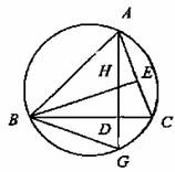 如图,ΔABC的高AD、BE相交于H,AD的延长线交外接圆于点G.