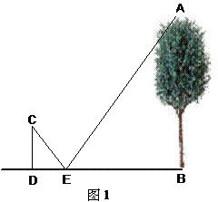 实践一:根据《物理》教科书中光的反射定律,利用一面镜子和一根皮尺,设计如图1的测量方案:把镜子放在离树8.7米的点E处,然后沿着直线BE后退到点D,这时恰好在镜子里能看到树梢顶点A,再用皮尺量得DE=2.9米,观测者身高CD=1.6米,请你计算树AB的高度(精确到0.1米)