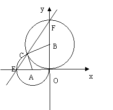 23、如图,直角坐标系中,O为坐标原定,点A、B分别在x轴的负半轴和y轴的正半轴上,⊙A⊙B交于O、C,并分别与坐标轴交于点E、F,若直线EF的解析式为![]()