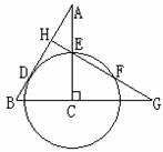 16、如图,在△ABC中,∠ACB=900,以顶点C为圆心的圆切AB于点D,交AC于点E,过点E作AB的垂线,垂足为H,HE交BC的延长线于点G,已知∠A=300,AE=25,则EG= 。