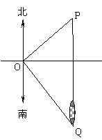 小鹏在三洲田风景区的观景台O处,观测到北偏东50º的P处有一艘集装箱货船,该船正向南匀速航行. 30分钟后再观测时,该船已航行到O的南偏东40º、且与O相距2千米的盐田港Q处,如图所示,求: