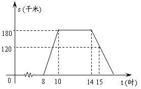 ⑵ 求出返程途中s(千米)与时间t(时)的函数关系,并回答小明全家到家是什么时间?
