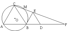 28. 如图,B为线段AD上一点,△ABC和△BDE都是等边三角形,连结CE并延长交AD的延长线于F,△ABC的外接圆⊙O交CF于M.