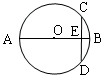 6. 如图所示,AB是圆O的直径,弦CD⊥AB,E为垂足,若AB=9,BE=1,则CD=_________________。