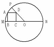 20、如图(下左),已知在⊙O中,直径MN=10,正方形ABCD的四个顶点分别在半径OM、OP以及⊙O上,并且∠POM=45°,则AB的长为___________.
