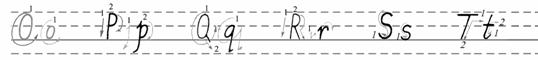 (2)(板书字母Oo-Tt, 教授字母的写法。)