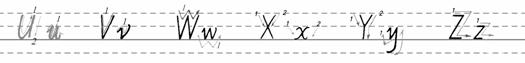 (2)(板书字母Uu-Zz,教授字母的写法。)
