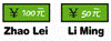 B: Jim has the __1__ money and Liu Ying has the __2__ money.