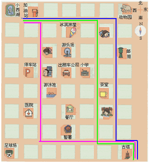 从小西湖出发,经过加油站,到古塔.