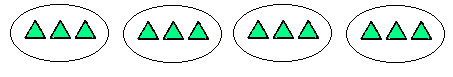 图意是把12个,每3个放1堆,放了4堆.正确的列式计算是12÷3=4(堆),选A.