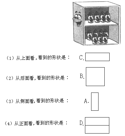观察下面的货架,分别从后面、侧面和上面各是什么形状?