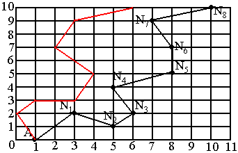 红红选择了从A到M的路线.请在上图中标出她所走的路线.A(1