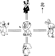 熊猫在狮子的________面,大象在狮子的________面;狮子在兔子的________面,在小熊的________面.