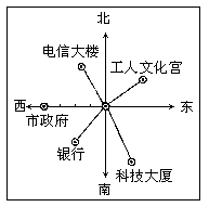 .服务中心在中心广场的( )偏( )( )°方向( )米处.![]()