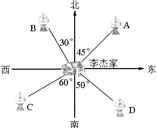无线信号发射器D在李杰家南偏( )( )°的方向.查看答案和解析>>