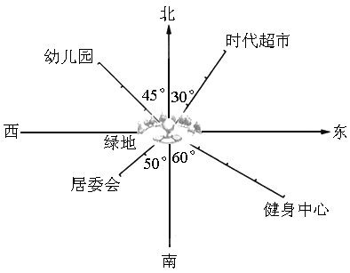 健身中心在绿地( )偏( )( )°方向( )米处.查看答案和解析>>