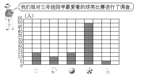 (4)三年级喜欢看( )比赛的人数最多,喜欢看( )比赛的人数最少,相差( )人.