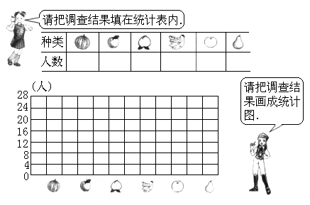 (1)最爱吃( )的人数最多,最爱吃( )的人数最少,它们相差( )人.