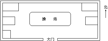 走进某校大门,中间是操场,操场的北侧是教学楼,东侧是图书馆,西侧是体育馆,办公楼和学生公寓分别在操场的东北和西北角,食堂在操场的西南角……请根据小聪的描述,把这些建筑物用序号标在适当的位置上.
