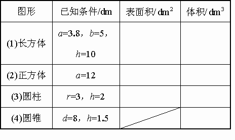 求下面图形的表面积和体积.