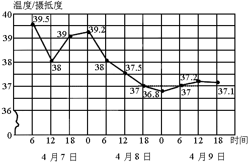 这个病人在4月8日12时的体温是多少摄氏度?(3)