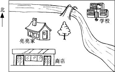 (2)从学校先向( )走,再向( )走可以看见一棵树,再往( )走,就可以到亮亮家了.